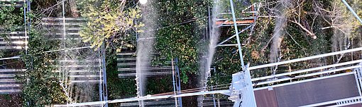 Im VPDrought-Experiment reduzieren wir das VPD in den Baumkronen von jeweils 3-5 Waldföhren an 6 Gerüsten, um den Einfluss von VPD auf die Stoffwechselprozesse der Bäume zu untersuchen.